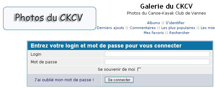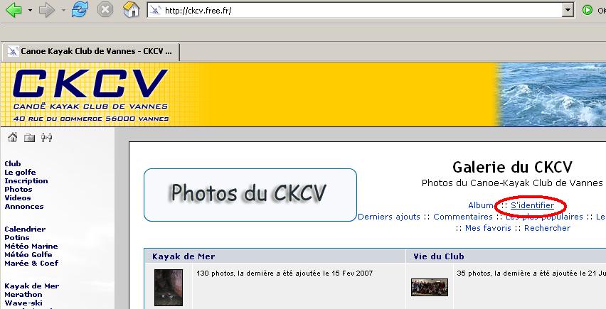 1 - Aller sur le site du ckcv, menu "Photos" et cliquer sur "S'identifier".