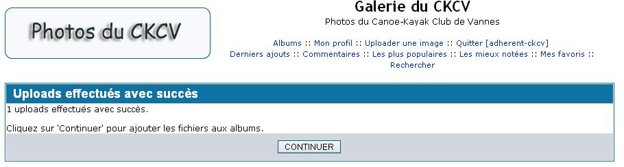 5 - Cliquer sur le bouton "Continuer" pour télécharger les images sur le site. Si l'opération se passe sans problème, le message suivant doit s'afficher.