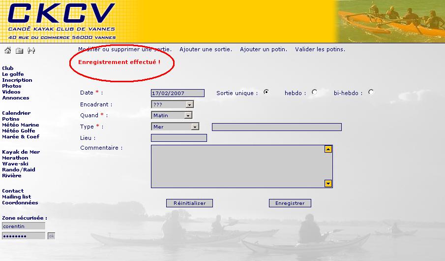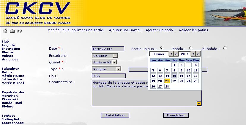 4 - La sortie sera ajoutée au calendrier du ckcv en cliquant sur le bouton Enregistrer