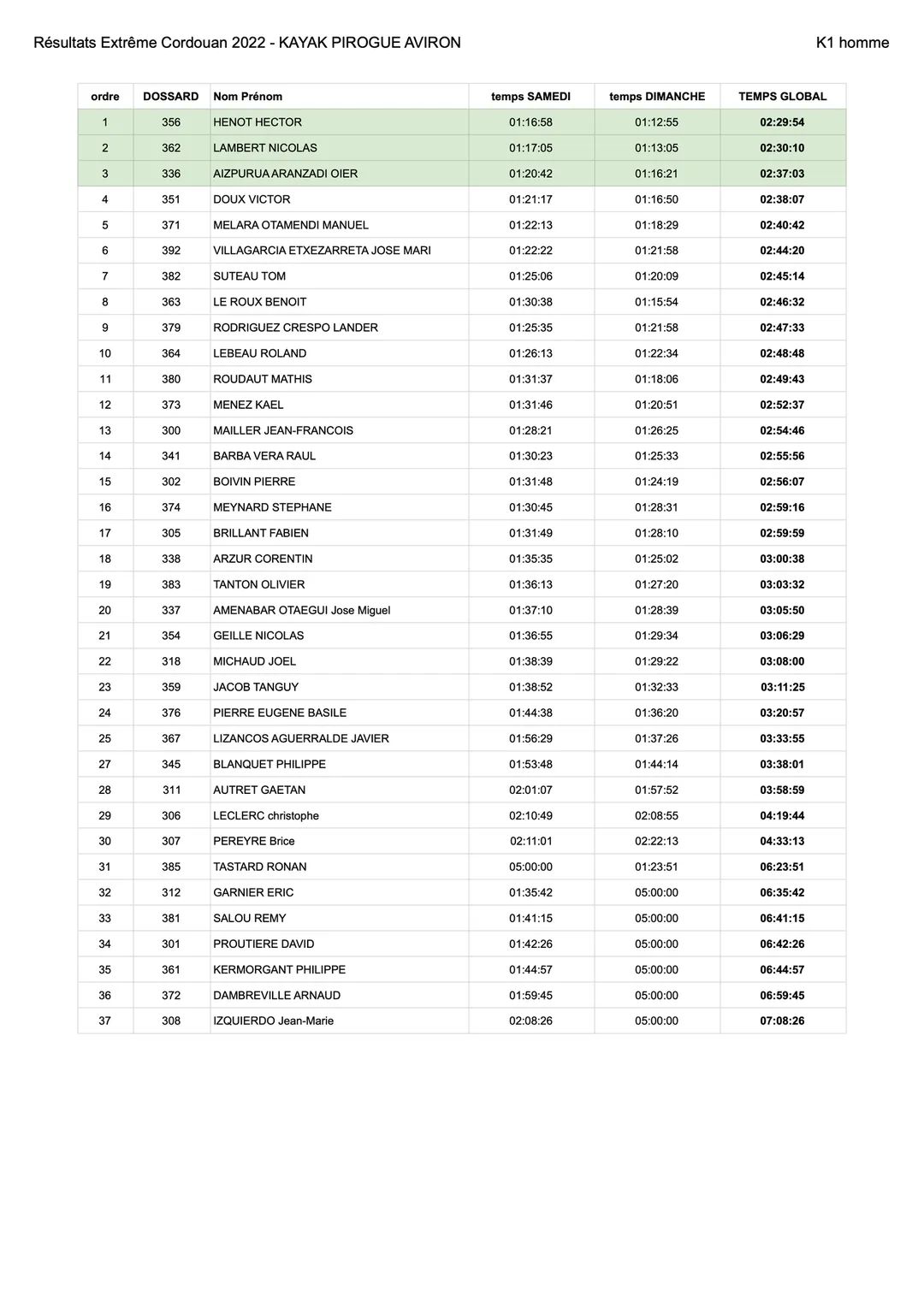 - 1er: Remi Pete/Edouard Hodebourg: 1h14:02
