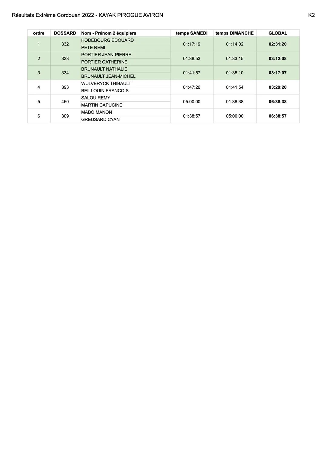 Sur le week-end l'équipage de Catherine et Jean-Pierre se positionne donc sur le podium "Extrème Cordouan" en 2nde position des K2 mixtes
